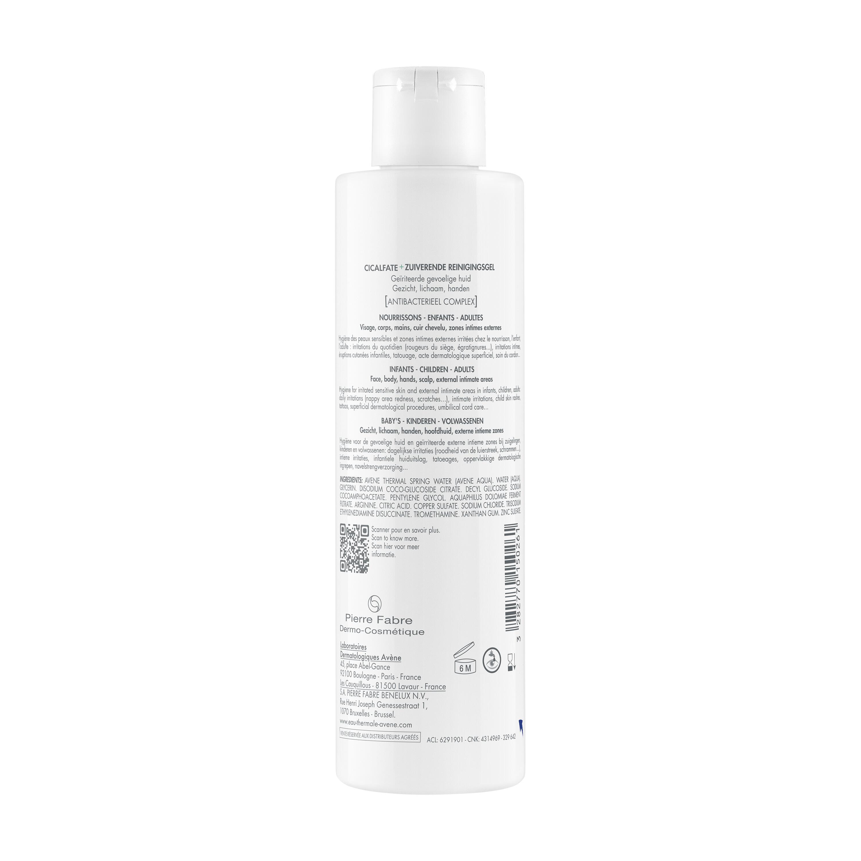 Avene Thermal Spring Water (Avene Aqua). Water (Aqua). Glycerin. Disodium Coco-Glucoside Citrate. Decyl Glucoside. Sodium Cocoamphoacetate. Pentylene Glycol. Aquaphilus Dolomiae Ferment Filtrate. Arginine. Citric Acid. Copper Sulfate. Sodium Chloride. Trisodium Ethylenediamine Disuccinate. Tromethamine. Xanthan Gum. Zinc Sulfate.