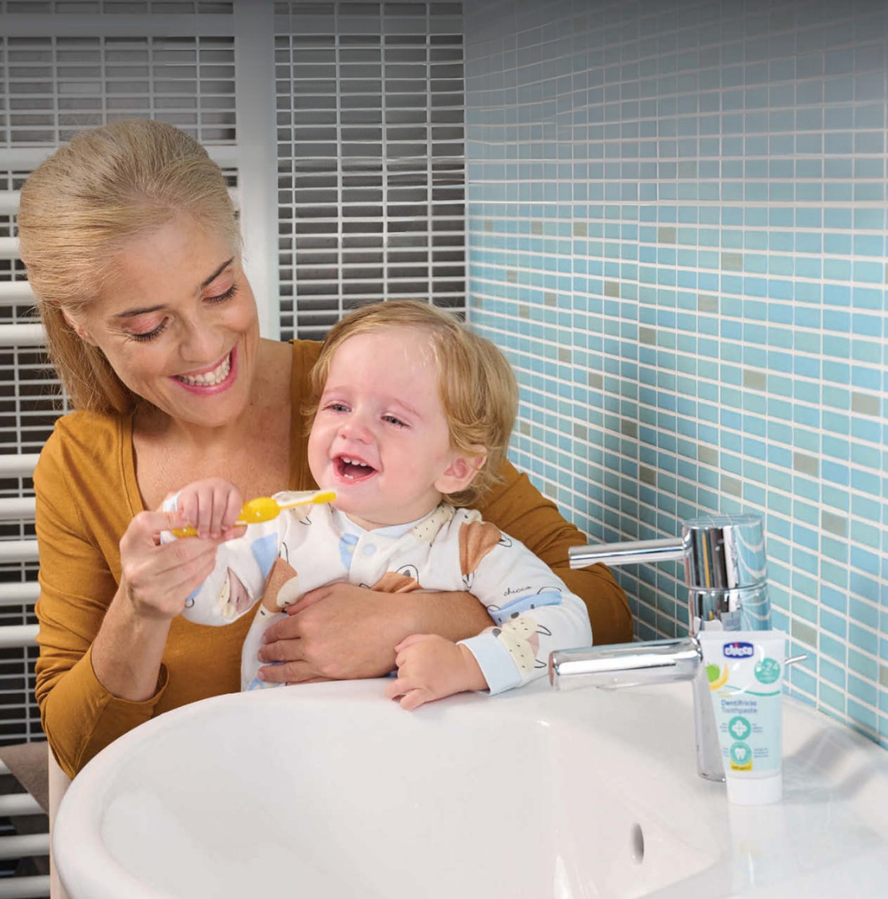 Pack económico com duas escovas dentais para bebés (6–36 meses), com cabeça compacta, cerdas ultra‑suaves cónicas e cabo ergonómico antiderrapante — fáceis de segurar e ideais para a rotina diária de escovagem.