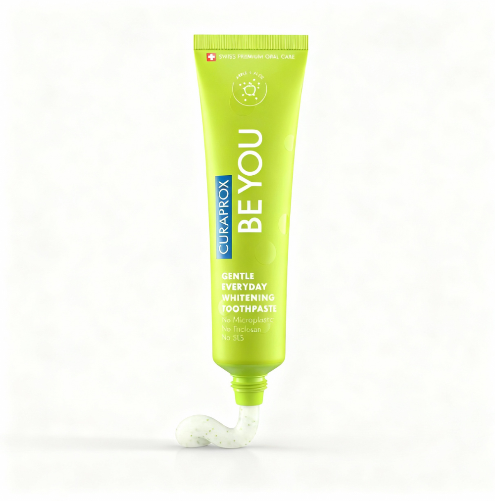 A Curaprox Be You Verde combina frescura frutada e cuidado oral eficaz. Com sabor de maçã verde e um toque suave de aloé vera, transforma a escovagem numa experiência agradável. A fórmula inovadora contém monofluorofosfato de sódio (≈ 950 ppm de flúor), que previne cáries, e hidroxiapatita (nano), que remineraliza o esmalte e reduz a sensibilidade dentária. As enzimas naturais estimulam as defesas da saliva, equilibrando a flora oral. Sem abrasivos agressivos nem peróxidos, proporciona clareamento seguro e delicado. O formato de 10 ml é perfeito para transportar ou experimentar a gama Be You.
