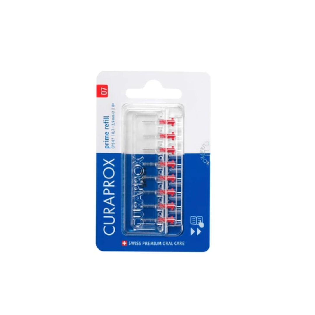Recargas de escovilhões interdentais Curaprox Prime CPS 07. 8 unidades para higiene interdental eficaz.