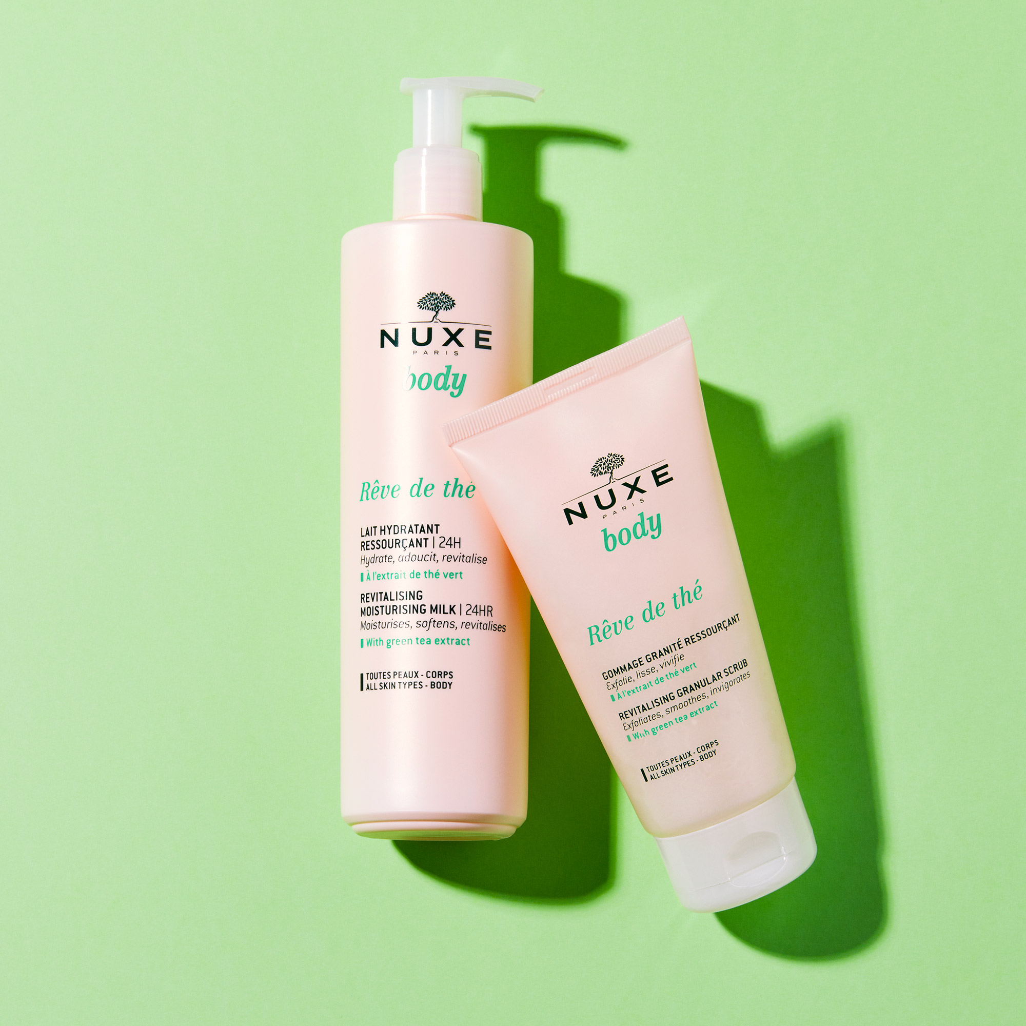O NUXE Rêve de Thé Exfoliante Revitalizante Granizado renova e suaviza a pele através da sua textura fresca e granulada que remove suavemente as células mortas. Enriquecido com partículas esfoliantes de origem natural e extrato de chá verde, estimula a microcirculação, revitaliza e deixa a pele mais lisa, tonificada e com uma sensação imediata de frescura e energia.