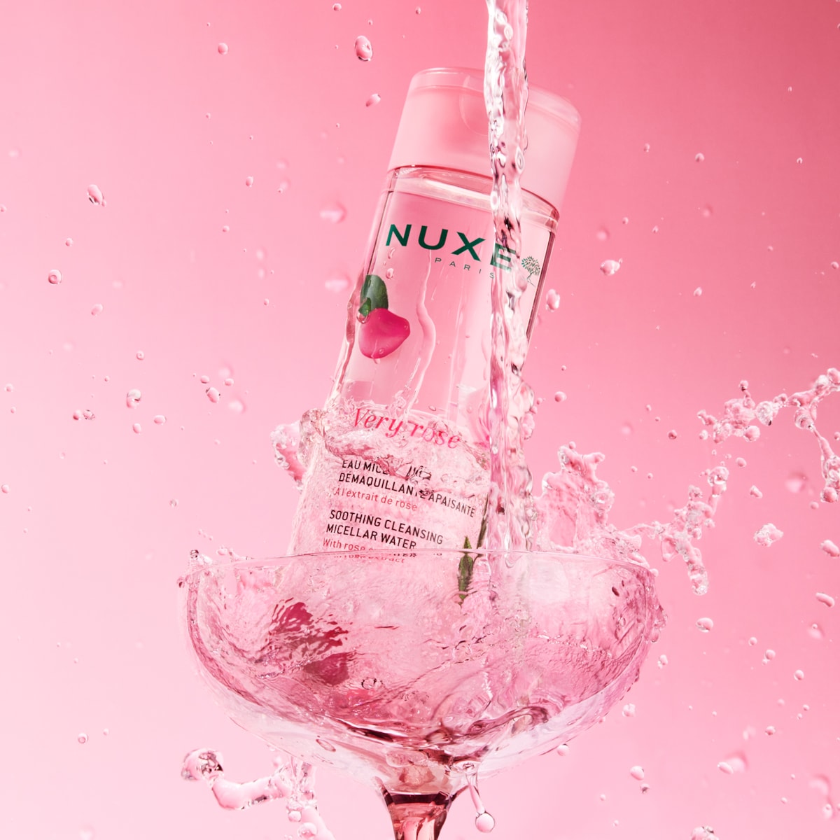 A Nuxe Very Rose Água Micelar 3-em-1 foi especialmente desenvolvida para remover maquilhagem, impurezas e partículas de poluição, enquanto preserva a barreira cutânea. Enriquecida com água floral de rosa, reconhecida pelas suas propriedades calmantes, e um complexo “Skin-Respect” de origem vegetal, deixa a pele fresca, macia e confortável.