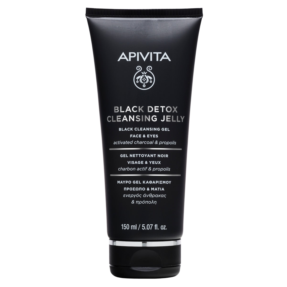 Gel de limpeza detox para rosto e olhos, com carvão ativado e extrato de própolis, que remove maquilhagem e impurezas sem ressecar a pele. 97% de ingredientes de origem natural.