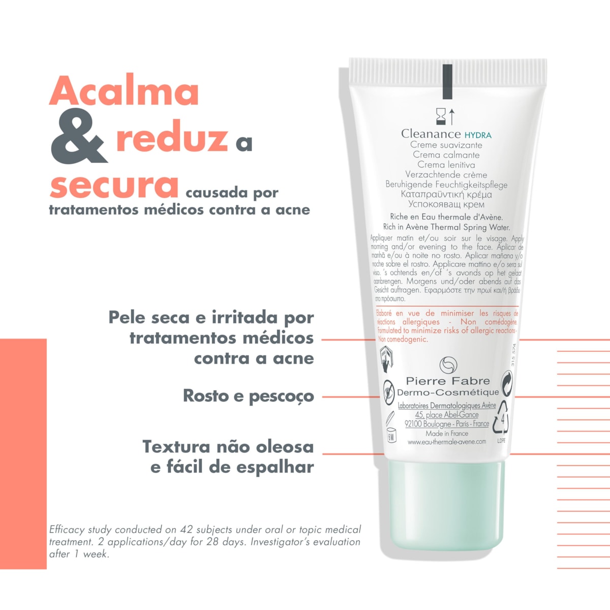 Creme nutritivo e calmante, especialmente desenvolvido para restaurar o conforto da pele seca ou sensível após tratamentos anti-acne. Ajuda a compensar o efeito de aprisionamento dos tratamentos, reforça a barreira cutânea com complexos emolientes como Glycoleol e Dextran Sulfate, e alivia o desconforto e a vermelhidão. Textura cremosa não oleosa, de rápida aplicação e absorção.