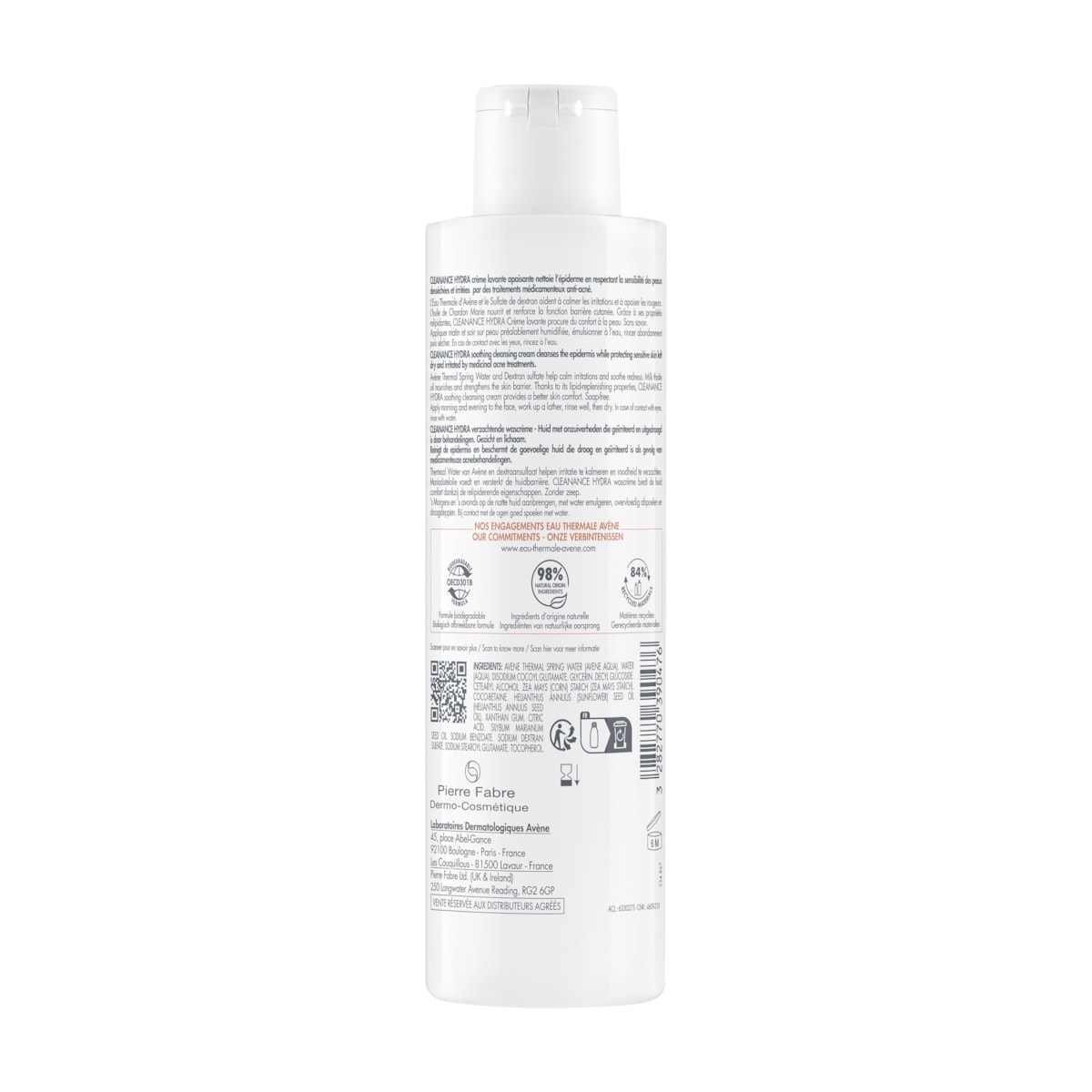 O Cleanance HYDRA Creme Lavante Suavizante mantém a barreira cutânea e restabelece o conforto. Este creme de limpeza com um pH fisiológico limpa e respeita a sensibilidade da pele seca e irritada pela medicação. Esta base de limpeza suave com ingredientes ativos hidratantes e nutritivos suaviza a pele sensível seca e irritada e ajuda no acompanhamento de tratamentos médicos contra a acne, graças à sua fórmula que contém a Água Termal D'Avène.