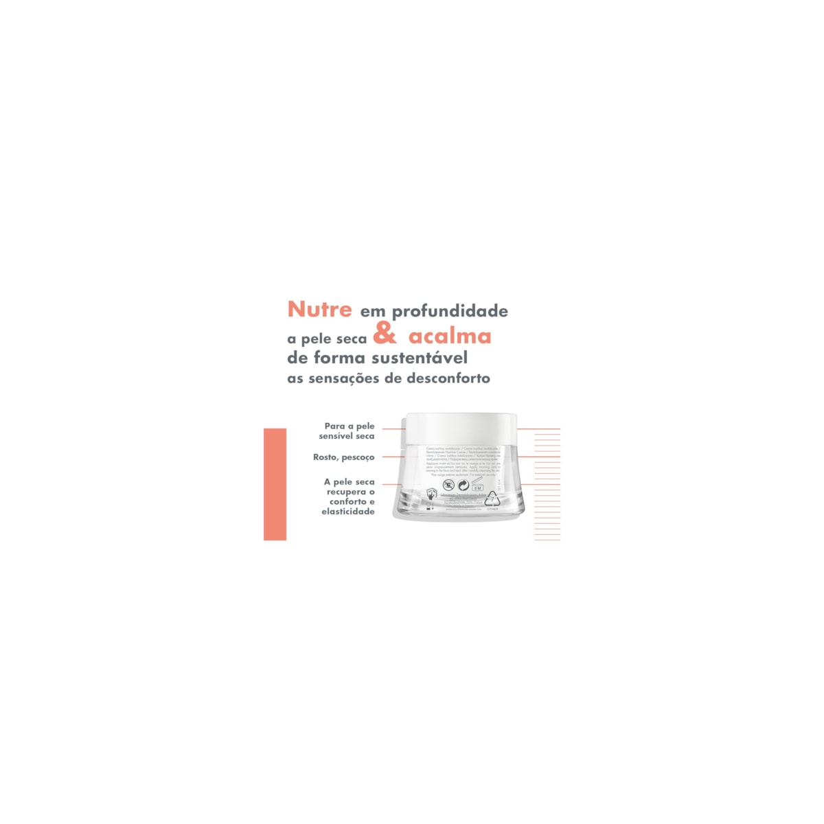 Este cuidado nutritivo delicado atua sobre os sinais de fadiga (traços e tez sem brilho) e reconforta a pele desconfortável com falta de nutrição, graças aos seus agentes nutritivos com uma estrutura homóloga ao cimento intercelular, combinados com óleos emolientes suavizantes. O Creme Nutritivo Revitalizante nutre, acalma e protege a pele seca e sem brilho. A composição deste creme nutritivo inclui extrato natural de frutos vermelhos, um "impulsionador" das células da pele e uma forma estável de vitamina E antioxidante para combater eficazmente os sinais de fadiga, bem como a Água termal d'Avène calmante e suavizante. A sua textura fundente deixa um véu suave e não oleoso sobre a pele, para revelar a sua beleza natural. A pele seca recupera elasticidade e conforto e a tez fica radiante.