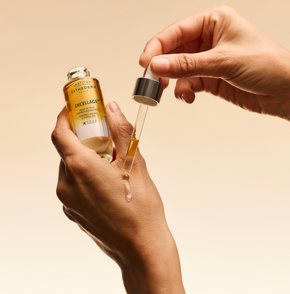 Chrono-Repair Active: Ressincroniza o ritmo biológico natural das células para uma reparação ideal da pele durante a noite.