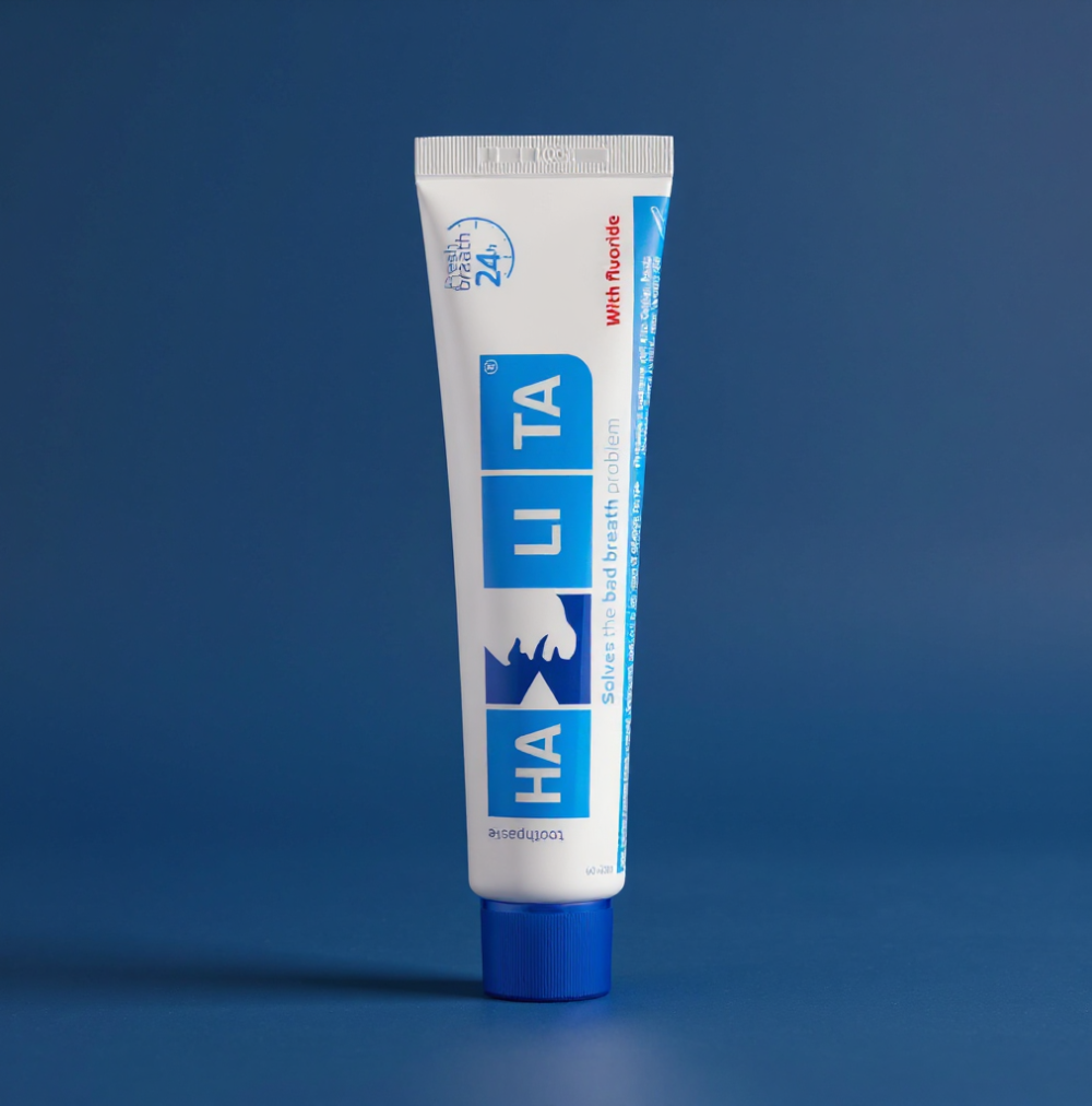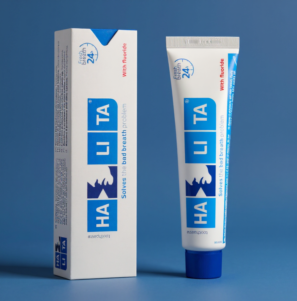 Pasta dentífrica de uso diário especialmente desenvolvida para controlar o mau hálito, refrescar a boca e proteger dentes e gengivas com flúor.