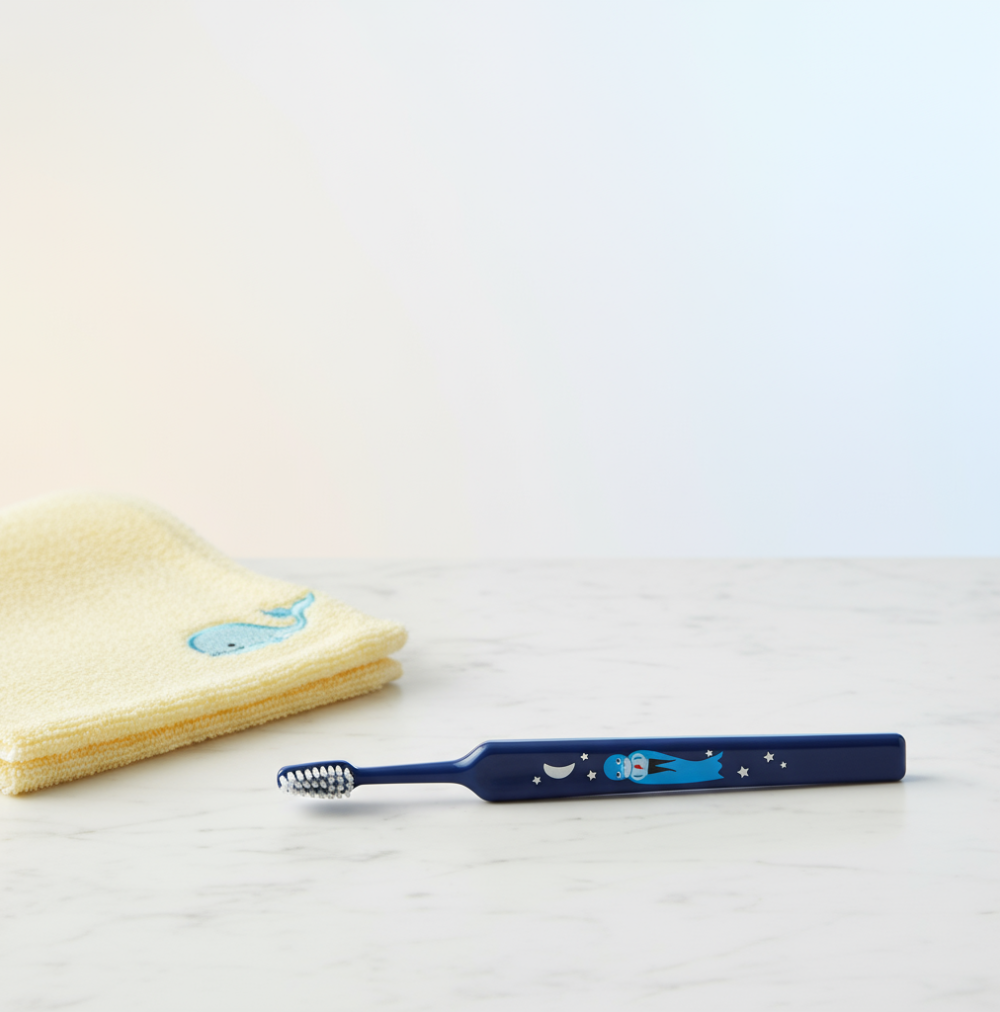 Escove os dentes duas vezes ao dia, de manhã e à noite, com pasta dentífrica adequada. Segure a escova num ângulo de 45º em relação à gengiva e faça movimentos circulares suaves. A presença de um adulto é recomendada para garantir uma correcta escovagem.