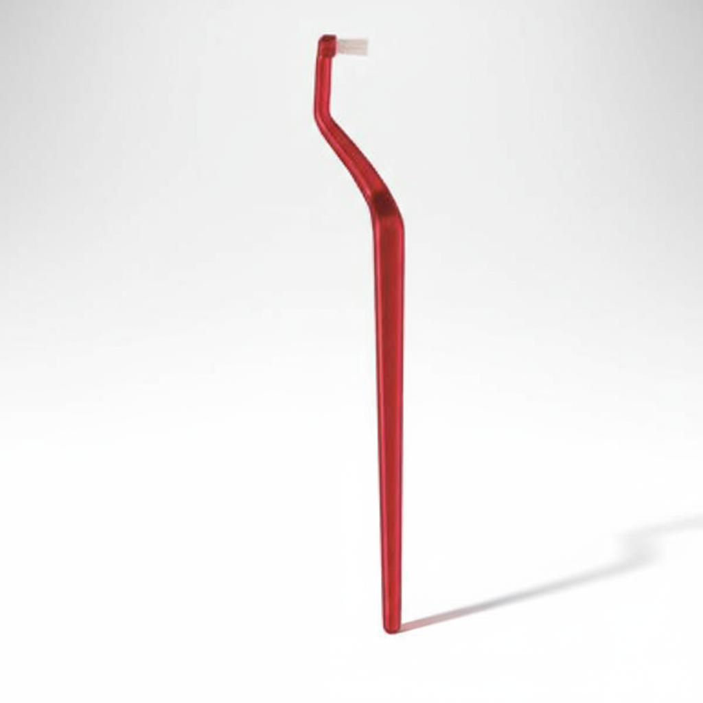 A TePe Universal Care é uma escova dentária especializada com design angulado que facilita o acesso às zonas de difícil alcance, ideal para dentes retro-inclinados, aparelhos dentários linguais, contenções e implantes.