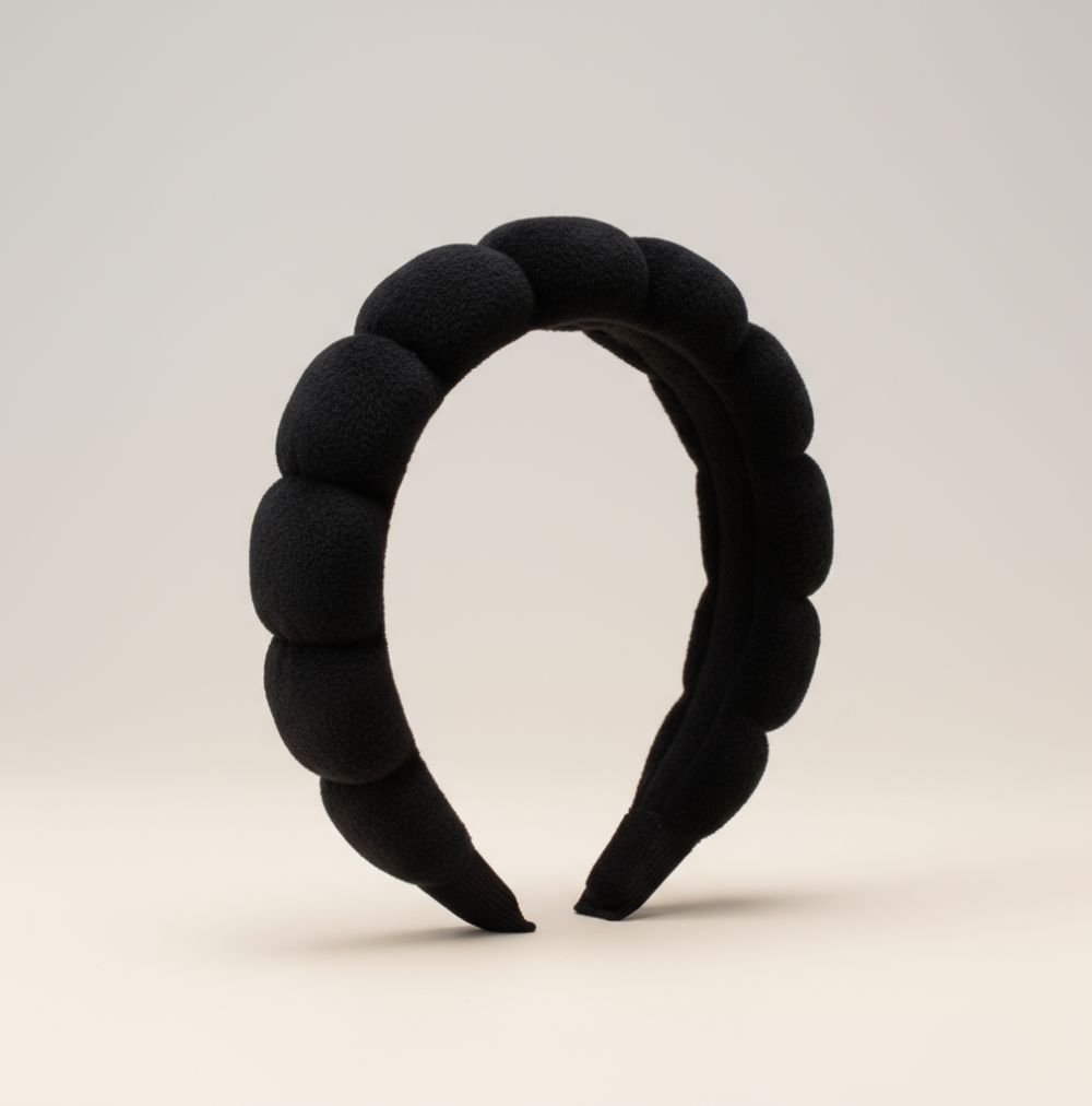 Bandolete VWAY confortável e prática, ideal para manter o cabelo afastado durante a rotina de cuidados faciais ou maquilhagem.